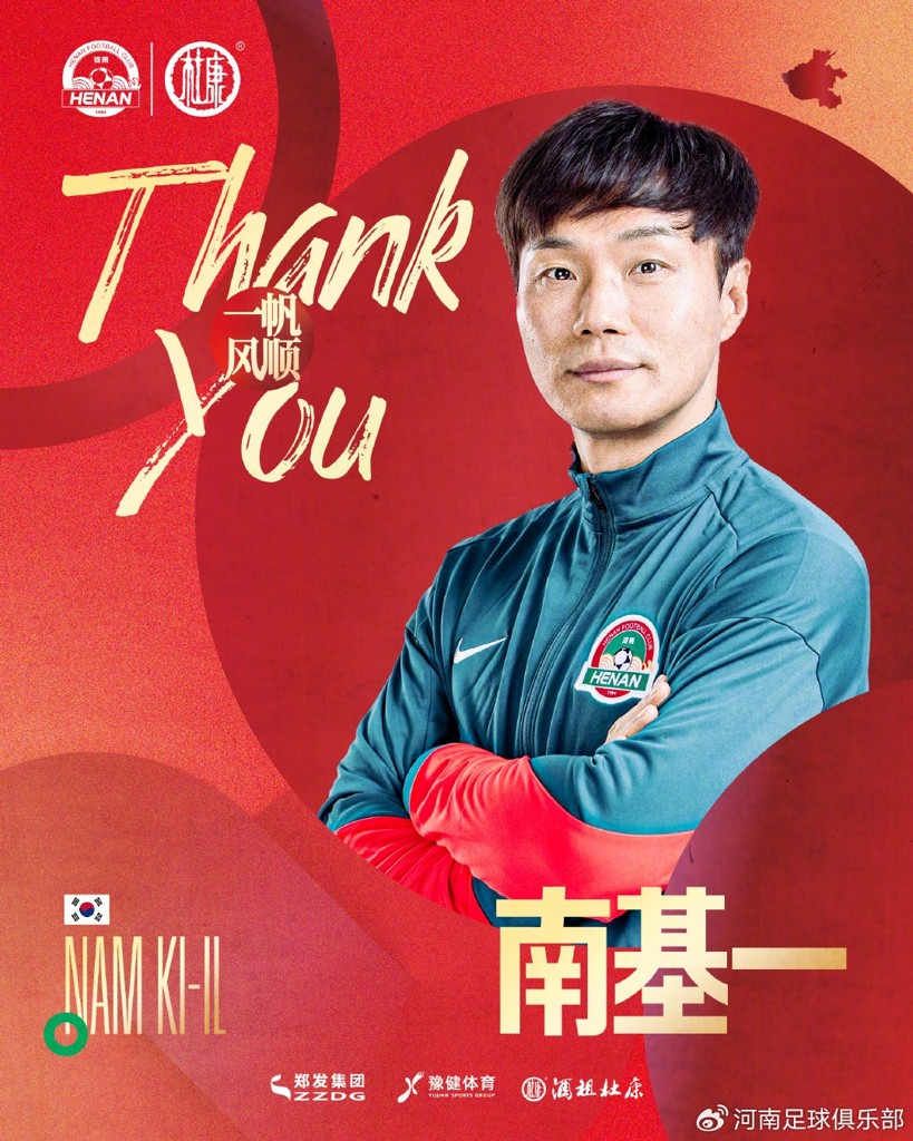 感谢南基一先生为河南足球作出的贡献,祝愿南基一先生未来一帆风顺!