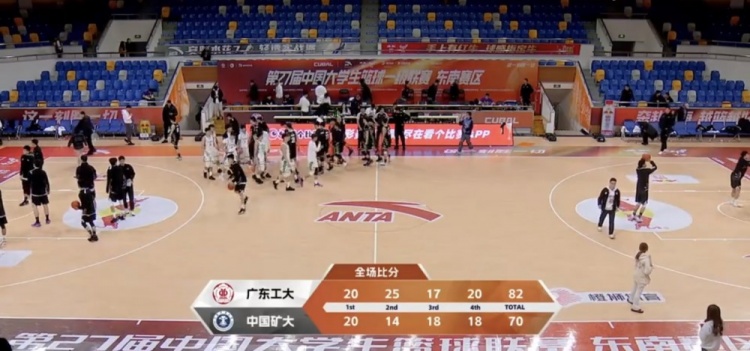 末节决战,艾渝上来三分命中追分,黄宇财连续中距离给出回应,双方命中率都有所下降,艾渝三分继续追分,但广东工大始终保持两球以上领先。暂停过后,中国矿大又是失误,曾煜成接连中远投砍下5分稳住双位数领先,时间越来越少,广东工大牢牢掌握住比赛主动权,最终广东工大82-70力克中国矿大,晋级四强。