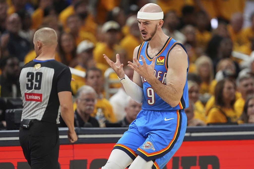 6月14日讯 NBA总决赛G4,雷霆在客场111比104击败步行者,大比分2比2。赛后,卡鲁索接受了采访。