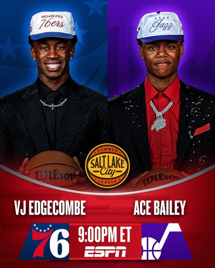 7月5日讯 明天上午9:00,NBA盐湖城夏季联赛将迎来一场焦点对决,对阵双方是76人和东道主爵士。