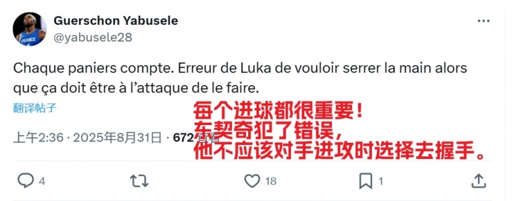 法国球员亚布塞莱社媒上和网友回复时谈到了此事。