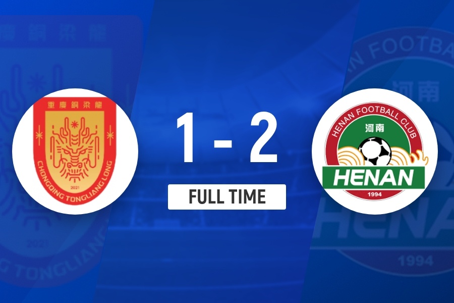 伤停补时5分钟。全场比赛结束,重庆铜梁龙1-2河南。