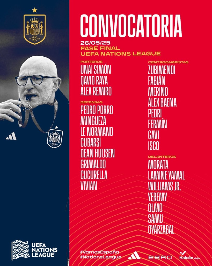 05月26日讯 西班牙国家队公布新一期国家队球员名单,亚马尔领衔,佩德里、加维、莫拉塔、怀森入选,33岁伊斯科回归。本期西班牙国家队将出战下月进行的欧国联比赛,首战是半决赛对阵法国队。