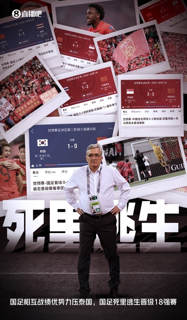 泰国与国足同积8分,且净胜球均为0球,最终国足凭借对泰国的胜负关系优势(1胜1平),惊险晋级18强赛。