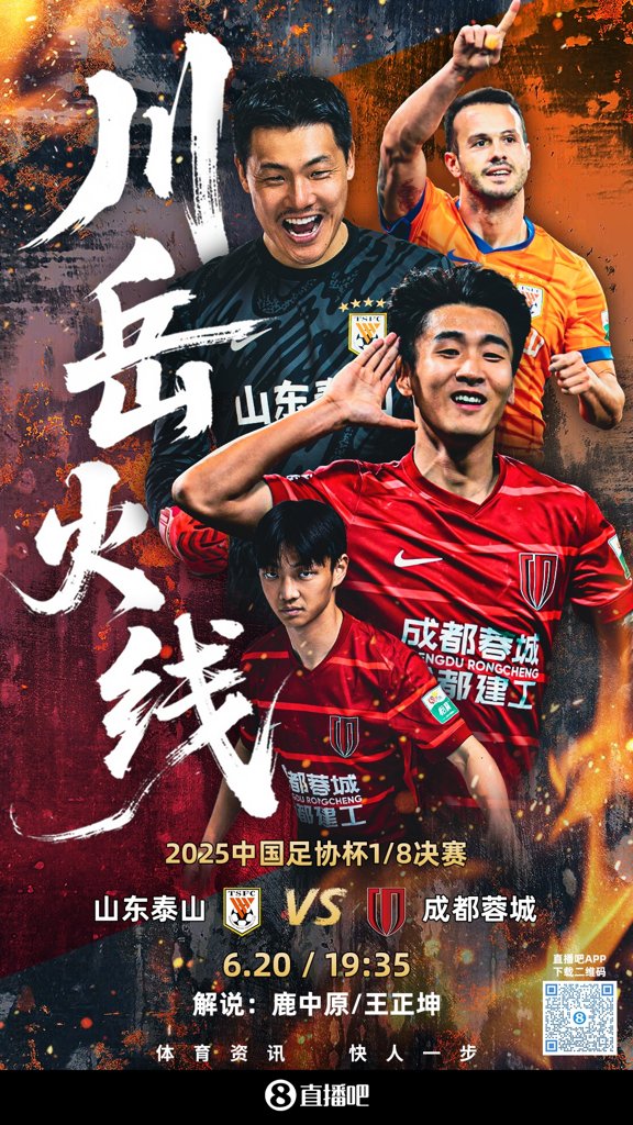 看足协杯上直播吧!视频直播预告:泰山大战蓉城 川岳火线谁晋级