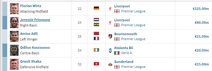 据德转统计,这样的价格使阿德利成为了药厂今夏出售第三贵的球员,仅次于1.25亿欧元的维尔茨和4000万欧元的弗林蓬。